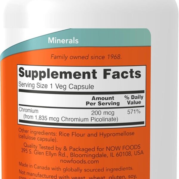 Now Chromium Picolinate (200 mcg) – 250 Veg Capsules